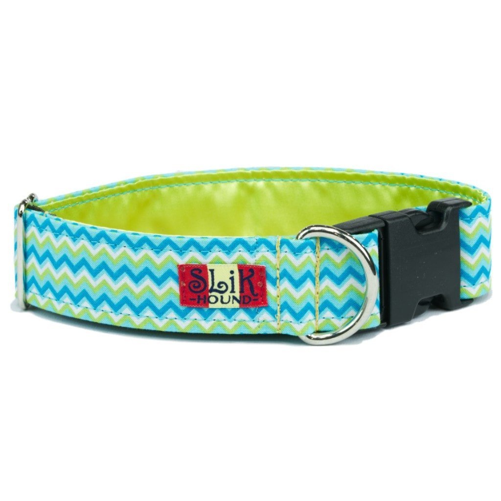 We DO NOT warranty our dog collars. We use the highest quality plastic buckles, Kevlar thread, and webbing. Our collars are designed to be safe and are constructed to the highest standards. We make every collar with our own two hands. They will not fall apart. The fabric wrapped exterior of our famous Fashion dog collars will only look good and last as long as it is cared for. Removing the collar before periods of rough play or exposure to the elements will increase the fabric’s longevity. Fabric is not abrasion resistant and can be ripped or torn during everyday use. Fashion collars should not be worn if your dog is scratching at its neck. Scratching will quickly ruin the way a Fashion collar looks. Treat your dog’s scratchy neck before wearing collar.If you think you have discovered one of our very rare manufacturing defects or your collar was made with a possibly defective piece of hardware please email pictures and info regarding when and where you purchased serviceteam@SLiKHound.com