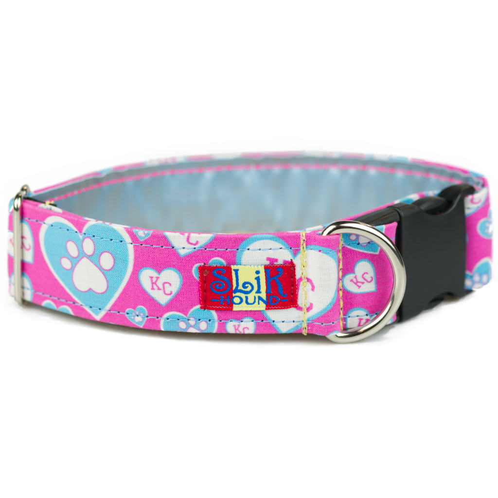 We DO NOT warranty our dog collars. We use the highest quality plastic buckles, Kevlar thread, and webbing. Our collars are designed to be safe and are constructed to the highest standards. We make every collar with our own two hands. They will not fall apart. The fabric wrapped exterior of our famous Fashion dog collars will only look good and last as long as it is cared for. Removing the collar before periods of rough play or exposure to the elements will increase the fabric’s longevity. Fabric is not abrasion resistant and can be ripped or torn during everyday use. Fashion collars should not be worn if your dog is scratching at its neck. Scratching will quickly ruin the way a Fashion collar looks. Treat your dog’s scratchy neck before wearing collar.If you think you have discovered one of our very rare manufacturing defects or your collar was made with a possibly defective piece of hardware please email pictures and info regarding when and where you purchased serviceteam@SLiKHound.com