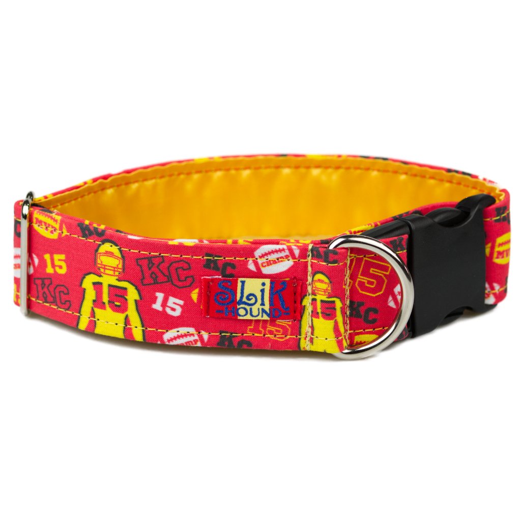 We DO NOT warranty our dog collars. We use the highest quality plastic buckles, Kevlar thread, and webbing. Our collars are designed to be safe and are constructed to the highest standards. We make every collar with our own two hands. They will not fall apart. The fabric wrapped exterior of our famous Fashion dog collars will only look good and last as long as it is cared for. Removing the collar before periods of rough play or exposure to the elements will increase the fabric’s longevity. Fabric is not abrasion resistant and can be ripped or torn during everyday use. Fashion collars should not be worn if your dog is scratching at its neck. Scratching will quickly ruin the way a Fashion collar looks. Treat your dog’s scratchy neck before wearing collar.If you think you have discovered one of our very rare manufacturing defects or your collar was made with a possibly defective piece of hardware please email pictures and info regarding when and where you purchased serviceteam@SLiKHound.com