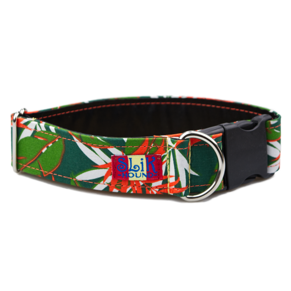 We DO NOT warranty our dog collars. We use the highest quality plastic buckles, Kevlar thread, and webbing. Our collars are designed to be safe and are constructed to the highest standards. We make every collar with our own two hands. They will not fall apart. The fabric wrapped exterior of our famous Fashion dog collars will only look good and last as long as it is cared for. Removing the collar before periods of rough play or exposure to the elements will increase the fabric’s longevity. Fabric is not abrasion resistant and can be ripped or torn during everyday use. Fashion collars should not be worn if your dog is scratching at its neck. Scratching will quickly ruin the way a Fashion collar looks. Treat your dog’s scratchy neck before wearing collar.If you think you have discovered one of our very rare manufacturing defects or your collar was made with a possibly defective piece of hardware please email pictures and info regarding when and where you purchased serviceteam@SLiKHound.com