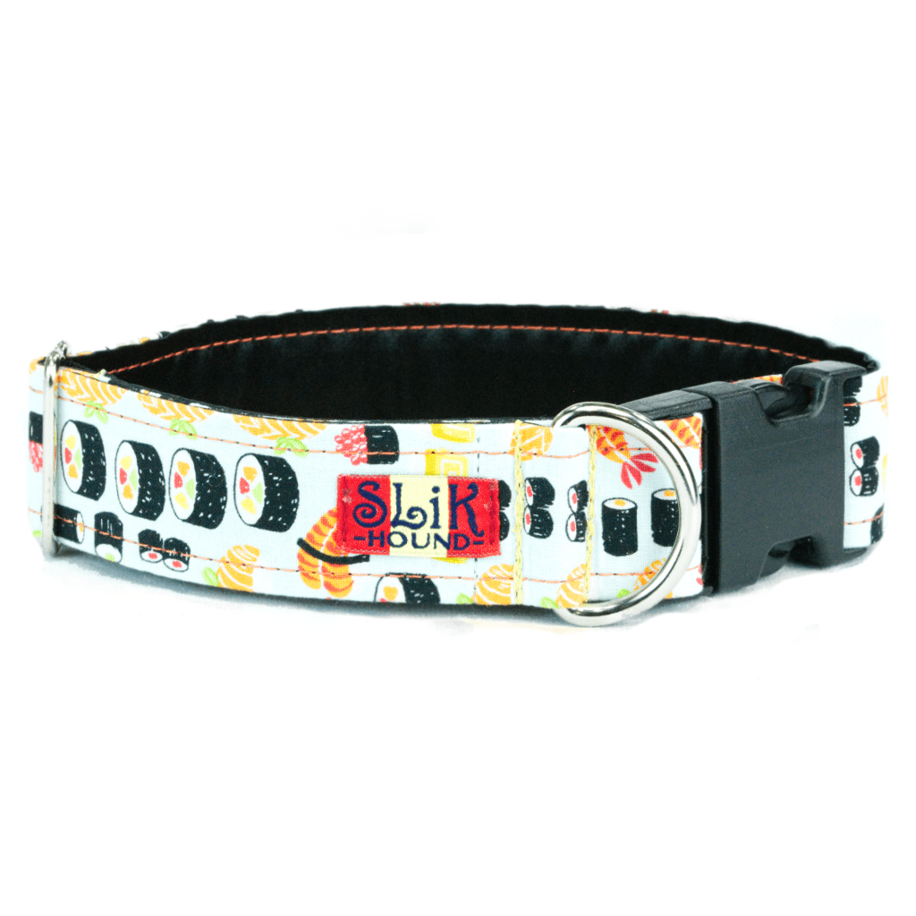 We DO NOT warranty our dog collars. We use the highest quality plastic buckles, Kevlar thread, and webbing. Our collars are designed to be safe and are constructed to the highest standards. We make every collar with our own two hands. They will not fall apart. The fabric wrapped exterior of our famous Fashion dog collars will only look good and last as long as it is cared for. Removing the collar before periods of rough play or exposure to the elements will increase the fabric’s longevity. Fabric is not abrasion resistant and can be ripped or torn during everyday use. Fashion collars should not be worn if your dog is scratching at its neck. Scratching will quickly ruin the way a Fashion collar looks. Treat your dog’s scratchy neck before wearing collar.If you think you have discovered one of our very rare manufacturing defects or your collar was made with a possibly defective piece of hardware please email pictures and info regarding when and where you purchased serviceteam@SLiKHound.com