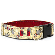 We DO NOT warranty our dog collars. We use the highest quality plastic buckles, Kevlar thread, and webbing. Our collars are designed to be safe and are constructed to the highest standards. We make every collar with our own two hands. They will not fall apart. The fabric wrapped exterior of our famous Fashion dog collars will only look good and last as long as it is cared for. Removing the collar before periods of rough play or exposure to the elements will increase the fabric’s longevity. Fabric is not abrasion resistant and can be ripped or torn during everyday use. Fashion collars should not be worn if your dog is scratching at its neck. Scratching will quickly ruin the way a Fashion collar looks. Treat your dog’s scratchy neck before wearing collar.