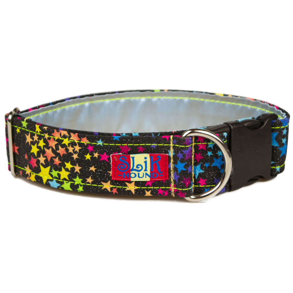We DO NOT warranty our dog collars. We use the highest quality plastic buckles, Kevlar thread, and webbing. Our collars are designed to be safe and are constructed to the highest standards. We make every collar with our own two hands. They will not fall apart. The fabric wrapped exterior of our famous Fashion dog collars will only look good and last as long as it is cared for. Removing the collar before periods of rough play or exposure to the elements will increase the fabric’s longevity. Fabric is not abrasion resistant and can be ripped or torn during everyday use. Fashion collars should not be worn if your dog is scratching at its neck. Scratching will quickly ruin the way a Fashion collar looks. Treat your dog’s scratchy neck before wearing collar.If you think you have discovered one of our very rare manufacturing defects or your collar was made with a possibly defective piece of hardware please email pictures and info regarding when and where you purchased serviceteam@SLiKHound.com